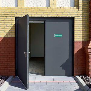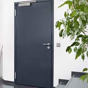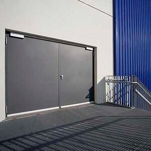 Unsere T30-1/2-FSA „62“ Stahl-Feuerschutztür ist geprüft nach EN 1634-1 (DIN 4102). Es handelt sich um ein ein- oder zweiflügeliges Türelement mit einer Türblattdicke von 62 mm, das 3-seitig gefälzt ist. Das Türblatt und die Zarge sind verzinkt und pulverbeschichtet grundiert in Grauweiß ähnlich RAL 9002.